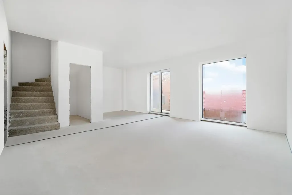 Uvedená cena je po dokončení stavby (svrchní povrch podlah lepený vinyl a keramická dlažba, obložkové dveře) bez kuchyňské linky.