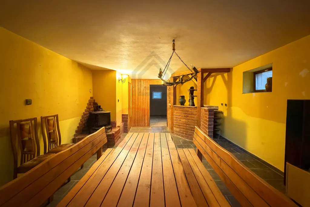 V přízemí dále najdete posilovnu a místnost vhodnou pro posezení s přáteli. Výhodou je také přilehlá garáž.