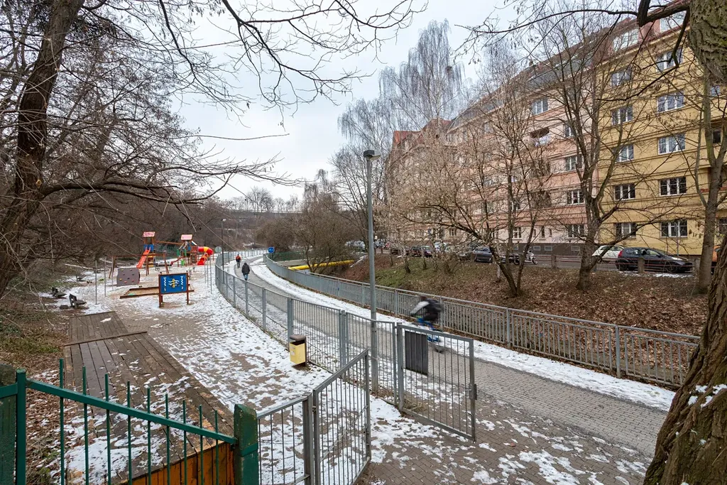Jedná se o velmi klidnou lokalitu s kompletní občanskou vybaveností. Výhodou je zastávka tramvají č. 3, 8, 9, 10, 11, 15, 17, 19, 24, 31, 38, 91, 95 a autobusu vzdálená pouhých 5 min chůzí od domu. Zastávka metra je taky v blízkosti, přibližně 14 minut chůze nebo tramvají. V okolí se nacházejí potraviny, supermarkety, lékárna, drogerie, restaurace, lékaři a další služby. U domu a v jeho okolí je dostatek dětských hřišť, MŠ i ZŠ. V blízkosti je také hodně zeleně a rybník.