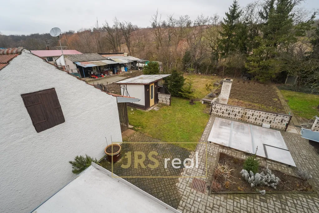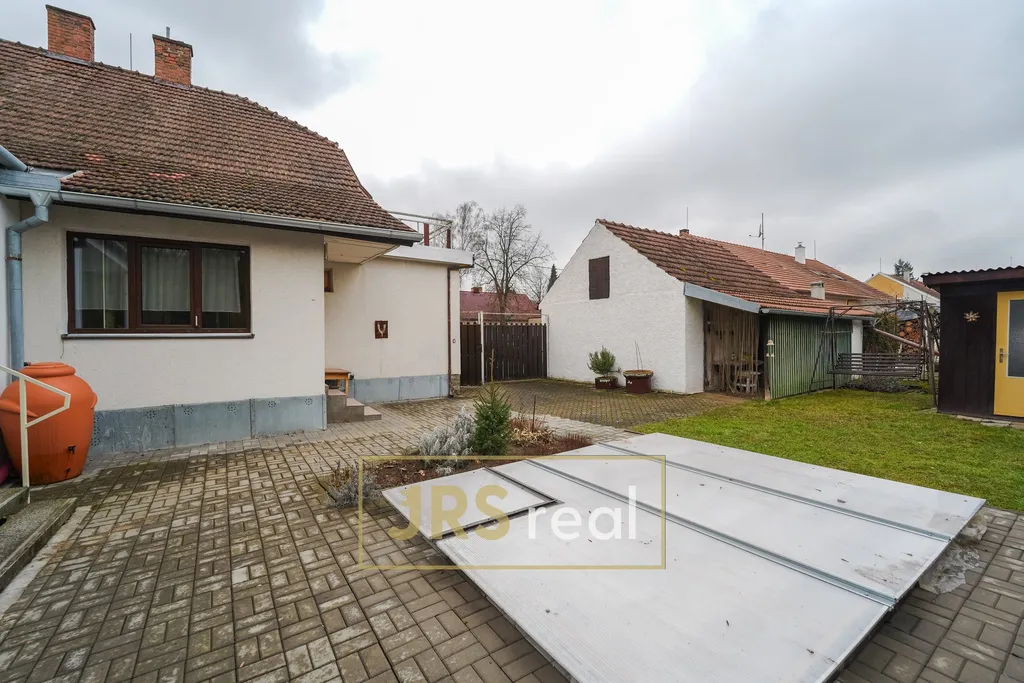 Součástí nemovitosti je garáž s dílnou (vhodná spíše pro menší vozidlo), kůlna a původní betonový bazén. Velkorysá zahrada a dvůr poskytují dostatek prostoru pro relaxaci, zahradničení i případné další stavební úpravy.