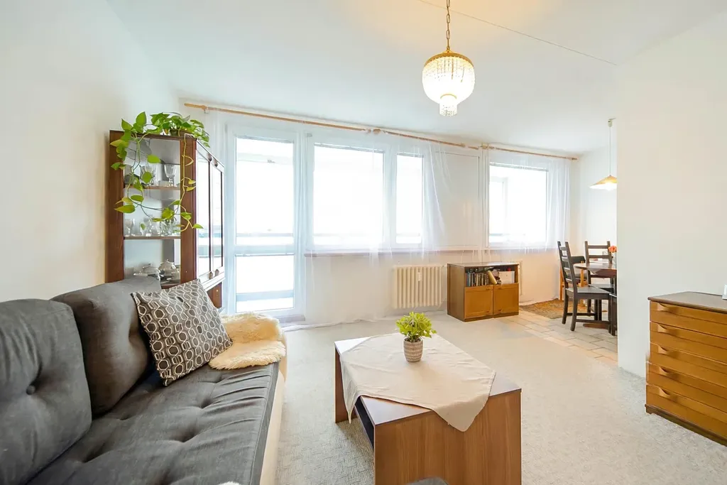 Jednotka je situována do 5. patra s výtahem. Okna mají orientaci na severozápad a jihovýchod do vzrostlé zeleně. Byt je v původním udržovaném stavu - jádro umakartové. Koupelna a záchod jsou zvlášť. Obývací pokoj je prostorný a má 20 m2, na něj navazuje původní kuchyň o 11m2. Chodba s předsíní je prostorná a ukrývá i vestavěné police a šikovnou šatnu. Byt má solidní a praktickou dispozici s dobře využitými prostory.