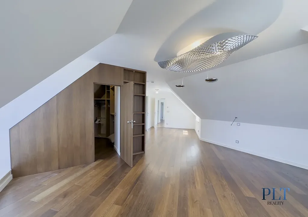 Vila zaujme svým nevšedním architektonickým řešením – centrální šestiboké jádro plynule přechází do tří samostatných křídel. V jednom z nich se nachází hlavní obytná část o dispozici 8+1, druhé je určeno k relaxaci a wellness, a třetí propojuje prostornou trojgaráž s podkrovním bytem 3+kk, který má vlastní vstup.