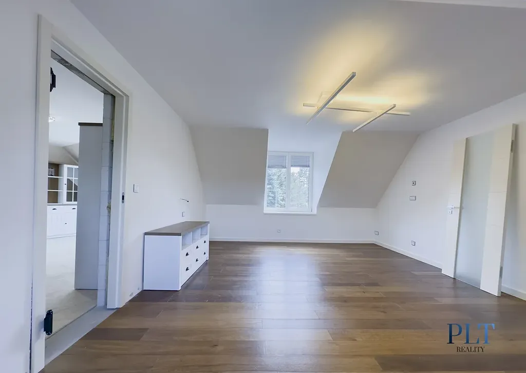 Samostatný byt 3+kk je situován v podkroví nad garáží ve východním křídle domu a nabízí plochu 79 m². Díky oddělenému vstupu je ideální například pro hosty nebo vícegenerační bydlení.