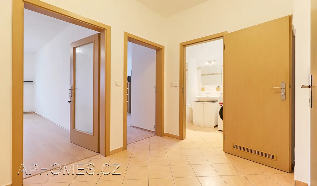 Součástí vybavení bytu je kuchyňská linka (vestavěná trouba, sklo-keramická deska, digestoř), lednice s mrazákem, pračka.