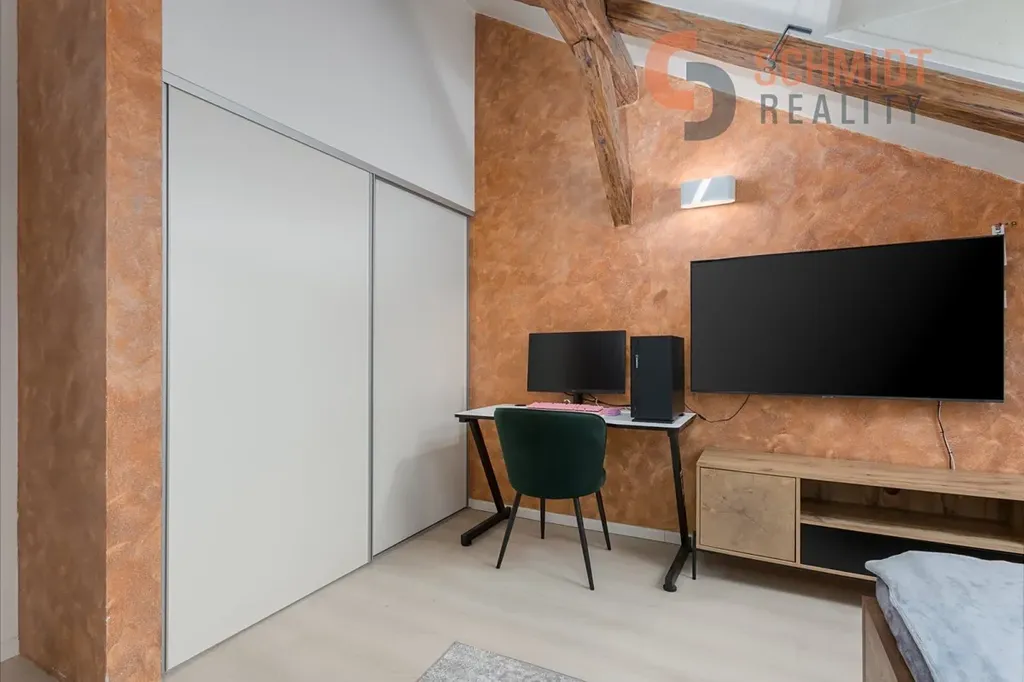 Právě terasa dává tomuto bytu jedinečnou atmosféru. Je dostatečně prostorná pro posezení s přáteli, letní grilování i klidné večery se sklenkou vína při západu slunce. V letních měsících se stává přirozeným prodloužením obývacího prostoru a výrazně zvyšuje komfort bydlení.