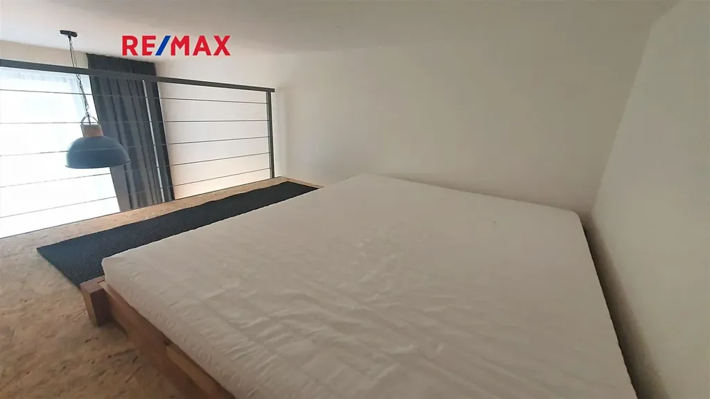 Byt sestává z předsíně, pokoje s kuchyňským koutem, patrem na spaní a koupelny s WC. Byt je nový, vkusně zařízený ve vysokém standardu. Díky vysokému stropu, 3,7 m, je v bytě pohodlné patro na spaní, s lůžkem i pro dvě osoby (šířka 160 cm). Dostatek úložného prostoru umožňuje vestavěná skříň v předsíni. Kuchyňský kout je plně vybaven (sporák s troubou, myčka nádobí, lednice), v koupelně je sprchový kout, umyvadlo a pračka.