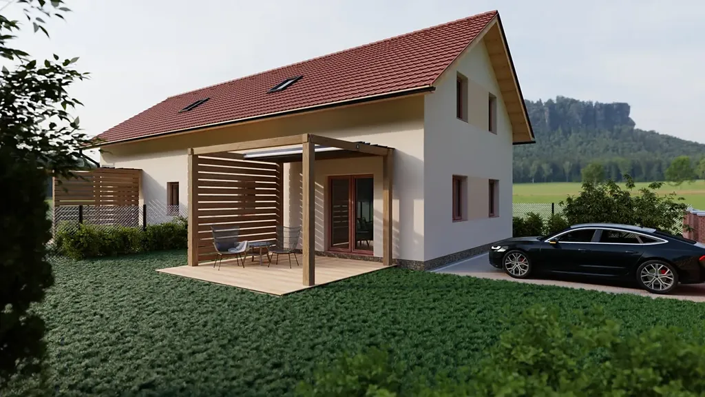 Stylová novostavba 3+kk se zahradou, jen 36 km od Prahy.