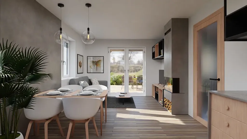 Rodinné domy v Tupadlech jsou koncipovány jako dvojdomy s hlavním vstupem na východní straně a zahradami po obvodu domu. Projekt je schválen pro 12 rodinných domů, což zajišťuje dostatek soukromí a klidné bydlení v malebném prostředí Kokořínského kraje, ideálního pro milovníky přírody.