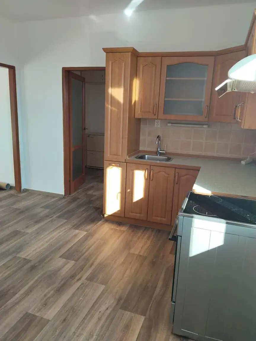 Byt je částečně zařízen: kuchyňská linka, šatní skříň, botník.