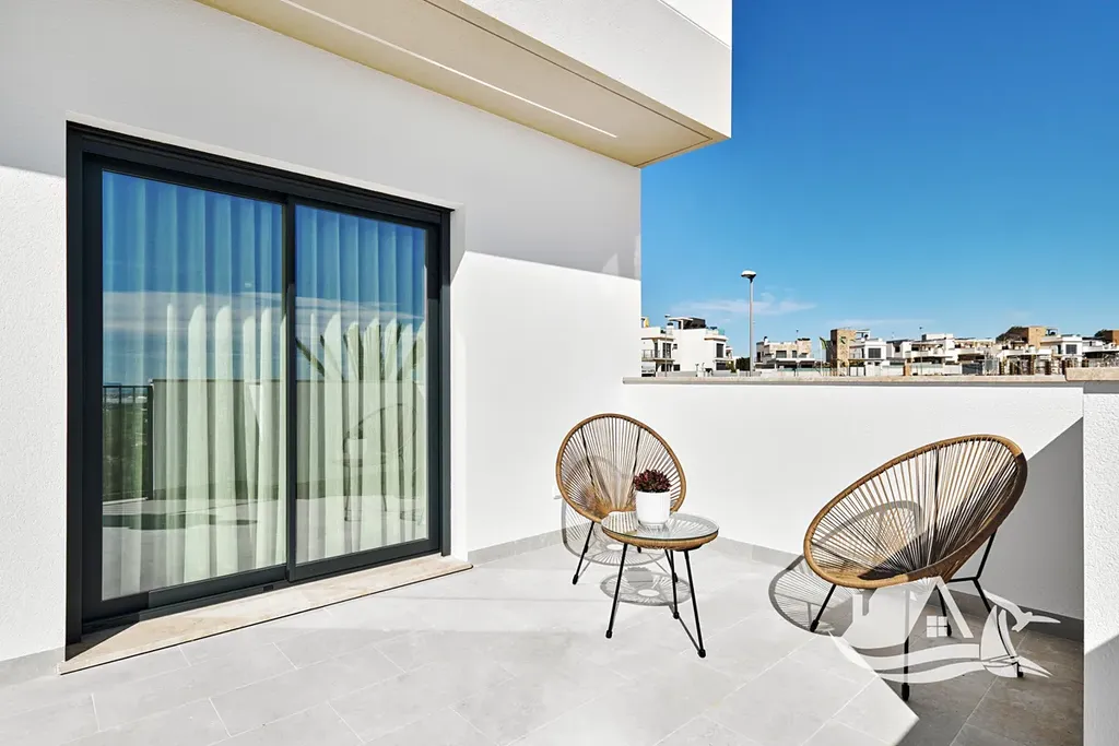 Interiéry jsou promyšlené tak, aby sloužily rodinám i párům, nabízejí tři ložnice a dvě koupelny, keramické podlahy pro snadnou údržbu a příjemný vzhled, plně vybavenou kuchyni a nábytek připravený k nastěhování, takže si nové bydlení můžete užít hned. Komfort zvyšují klimatizace a před instalace pro další chladicí jednotky, elektrické rolety a vestavěné skříně, vše v moderním a praktickém provedení.