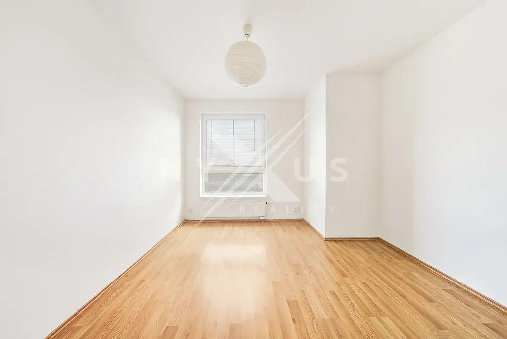 Interiér bytu je řešený chodbou, obývací částí s kuchyňským koutem ( k dispozici pouze varná deska a horkovzdušná trouba - není lednice, ani myčka) a vstupem na lodžii, ložnicí, pokojem, koupelnou se sprchovým koutem a místem pro umístění pračky, samostatnou toaletou a komorou v bytě. K dispozici garážové stání již v ceně nájemného.