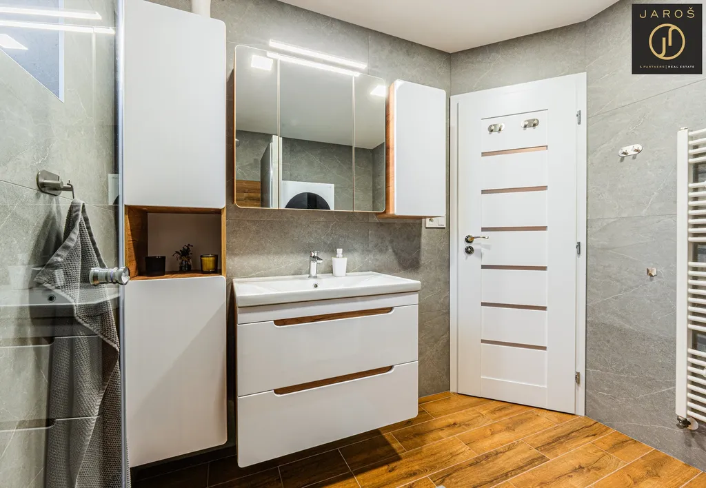 Samotný byt je rovněž po kompletní rekonstrukci – nové rozvody, moderní koupelna, plastová okna. Energetická náročnost budovy je PENB třídy C. Měsíční poplatky činí cca 5.500 Kč (z toho fond oprav 1.000 Kč) + spotřeba elektřiny, a to pro čtyřčlennou domácnost (2+2). Nastěhování je možné ihned, vyjma elektrospotřebičů /lednice, pračka, TV/ a sedací soupravy může v bytě zůstat vybavení.