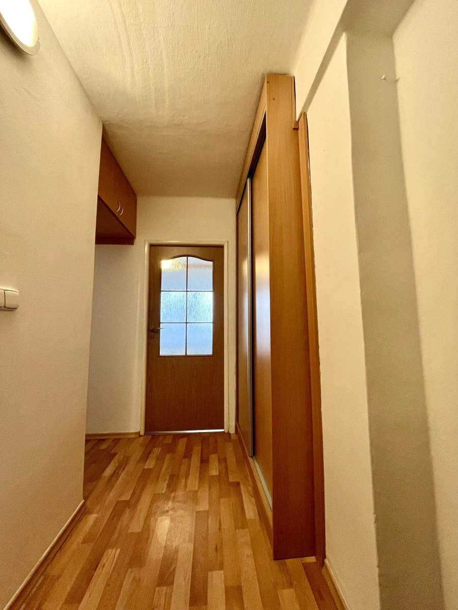 Předsíni je vestavěná šatní skříň s dostatkem úložných prostor.