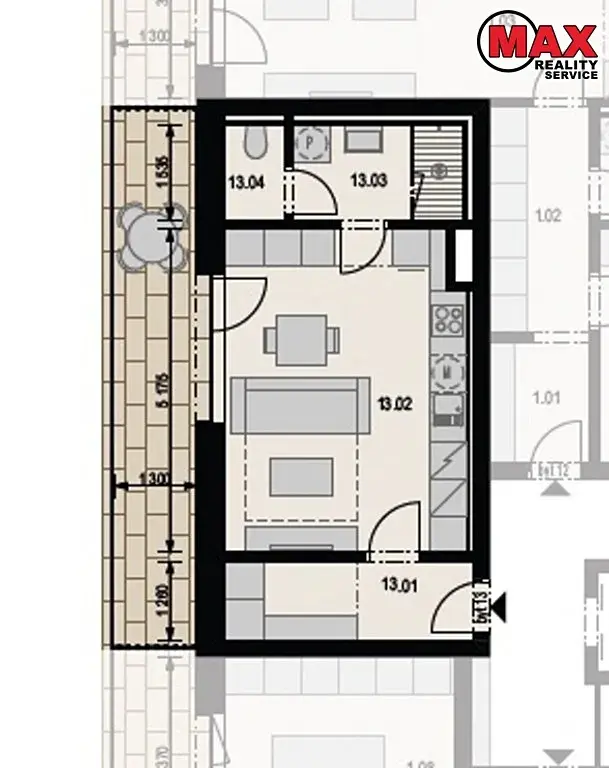 K nastěhování IHNED! Byt má k dispozici venkovní kryté parkovací stání a terasu (13 m2)!
