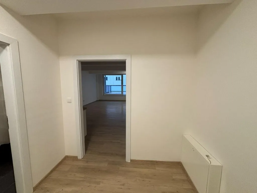 Interiér bytu je světlý, vzdušný a funkčně řešený. Kuchyň je vybavena kuchyňskou linkou s vestavěnými spotřebiči (digestoř, trouba, el. sklokeramická deska). Předsíň s možností umístění šatní skříně, koupelna s vanou je společná s WC a je zde možnost umístění pračky. Velkým benefitem je prostorná terasa, ideální pro relaxaci, posezení či městskou zeleň.