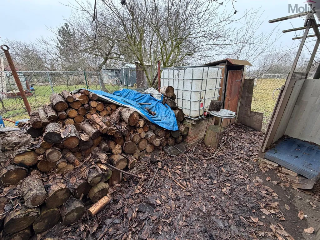 Dále se na pozemku nachází dřevěná kůlna vhodná pro uskladnění zahradního nářadí a dalšího vybavení.