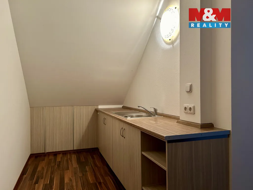 Nabízíme vám k dlouhodobému pronájmu zrekonstruovaný nebytový prostor o celkové výměře 24 m2 v žádané lokalitě blízkého centra Nýrska. Tento slunný prostor se nachází v podkroví cihlového domu, k němuž náleží i užívání kuchyňky, koupelny a samostatné toalety. Tento prostor lze využít jako kancelář nebo na kosmetické, masážní či jiné služby. V dosahu je veškerá občanská vybavenost a prostor je volný ihned. Parkování je možné u domu. Měsíční nájemné činí 5.000,- Kč, poplatky za topení, elektřinu a vodu sčítají 1.350,- Kč. Vratná kauce činí 10.000,- Kč. Provize 5000,- Kč + DPH. Vřele doporučuji prohlídku nemovitosti. V případě dotazů či domluvení osobní prohlídky se na nás neváhejte obrátit.