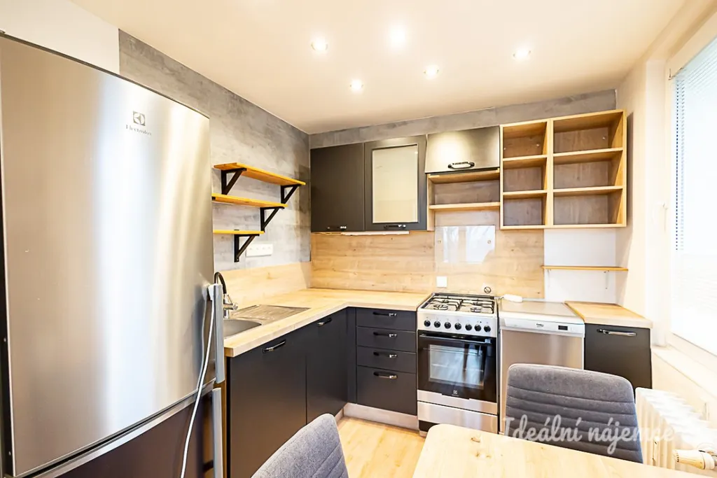 Byt je nabízen jako částečně vybavený, což představuje ideální příležitost pro ty, kteří si chtějí domov dotvořit podle vlastního vkusu a potřeb. Srdcem bytu je plně funkční kuchyně vybavená moderními spotřebiči včetně lednice s mrazákem, elektrické trouby, varné desky, digestoře a myčky, přičemž nechybí ani praktický jídelní kout. Dominantou bytu je rozměrný obývací pokoj zaplavený přirozeným světlem, který skýtá dostatek místa pro pohodlnou sedací soupravu i další nábytek. Druhý samostatný pokoj nabízí variabilní využití a skvěle poslouží jako klidná ložnice nebo inspirativní pracovna. Koupelna disponuje klasickou vanou a umyvadlem, zatímco toaleta je pro maximální komfort řešena samostatně.