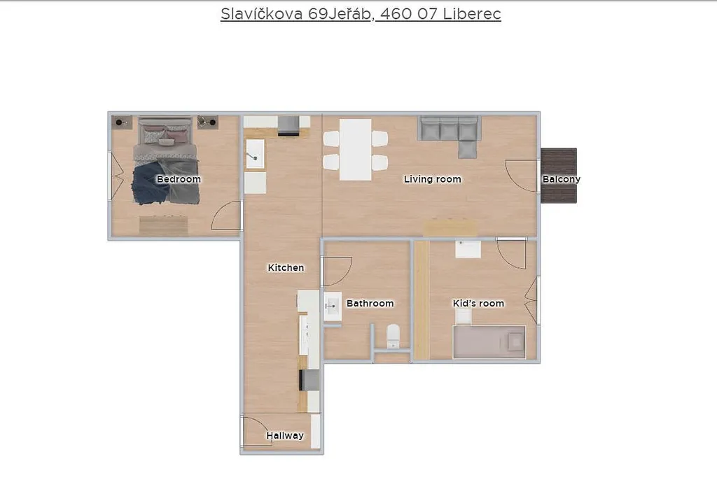Nabízíme k pronájmu zrekonstruovaný byt v klidné části města nedaleko centra Liberce, ul. Slavíčkova. Byt prošel kompletní rekonstrukcí se změnou dispozice na byt 3+kk. Kuchyňská linka je vybavena vestavěnými spotřebiči: varnou plyn. deskou, myčkou, troubou, mikrovlnkou, digestoří a lednicí s mrazákem. Druhá skříňková sestava s pultem je umístěna u jídelního koutu. Prostorná koupelna je se sprchovým koutem a doplněna koupelnovým nábytkem. Plovoucí podlahy v pokojích. Součástí bytu je malý balkón. Majitelé preferují nájemníky nekuřáky a bez zvířat. PENB nedodán, proto třída G.