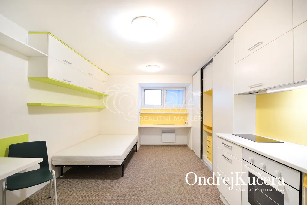 Tento prakticky řešený byt 1+kk s celkovou výměrou 29 m2 je vhodný pro jednotlivce, případně pár. Nachází se ve sníženém přízemí cihlového domu. V roce 2023 prošel rekonstrukcí a je plně vybavený. Má pokoj s kuchyňskou linkou, vstupní předsíň, koupelnu s vanou a samostatnou toaletu. Je vybavený vestavěnou skříní, pracovním stolem, postelí 130 cm širokou, jídelním stolem se židlemi, sklokeramickou varnou deskou, elektrickou troubou, lednicí s mrazákem, pračkou a bojlerem na ohřev vody v koupelně. Vedle bytu je také možnost využití společného uzamykatelného prostoru na kola.