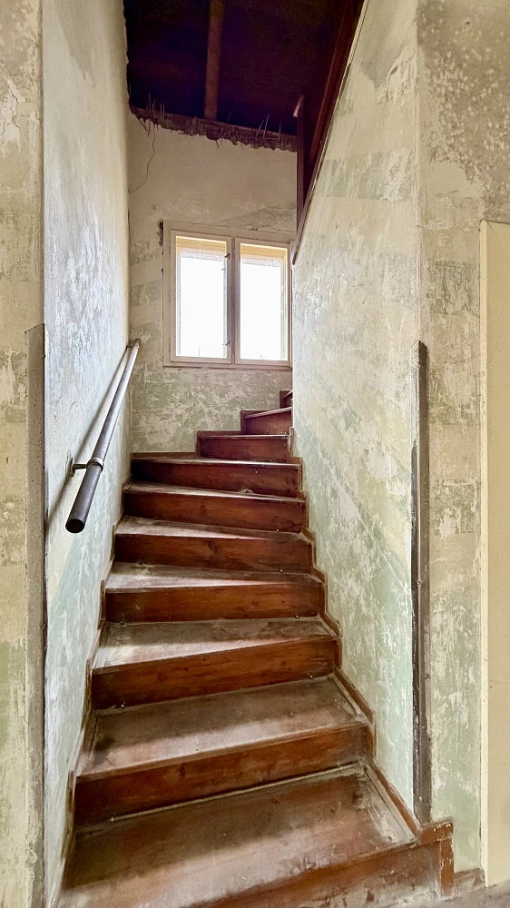 Původní schodiště: Masivní dřevěné schody i II. NP.