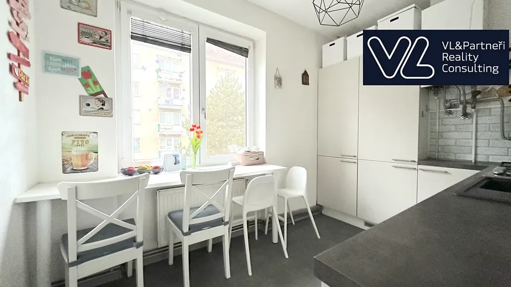 Dispozice bytu je praktická a funkční. Z prostorné vstupní chodby je přístup do všech místností – samostatné kuchyně, obývacího pokoje a dalšího pokoje, který lze využít jako ložnici, dětský pokoj nebo pracovnu. Obývací pokoj je světlý a nabízí vstup na balkon. Byt působí vzdušně a díky orientaci je dostatečně prosvětlený po celý den.
