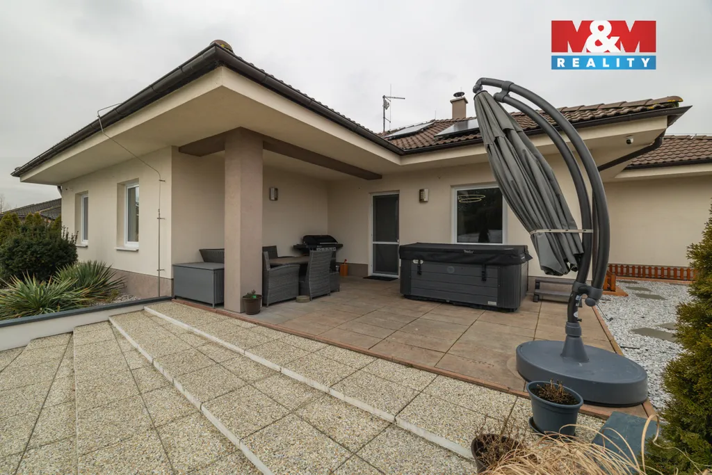 Exkluzivně nabízíme rezidenci, která není jen o bydlení – je o životním stylu. Samostatně stojící dům v Židněvsi, na okraji obce, vás ráno přivítá tichem a večer uklidní otevřeným výhledem do krajiny; zároveň jste za pár minut v Mladé Boleslavi. Cihlový dům s užitnou plochou cca 140 m² a 5 velkorysými místnostmi působí vzdušně a reprezentativně – ideální pro rodinu, home office i návštěvy. Krb dodá interiéru charakter, teplo i atmosféru. Terasa je perfektním místem pro ranní kávu i západ slunce. Pozemek 919 m² je navržen pro radost i regeneraci: bazén pro letní dny, sauna pro dokonalý restart a posilovna kdykoli chcete – bez sdílení, bez čekání, jen pro vás. Komfort podtrhuje garáž s elektrickými vraty i kryté stání pro další vůz. Velmi dobrý stav a připraveno k okamžitému nastěhování. Pokud hledáte soukromí, klid a skutečnou přidanou hodnotu, rád vás provedu – osobní prohlídka nejlépe ukáže, proč se odtud nechce odjíždět. Místo, kde máte své soukromé spa a každý den je jako dovolená.