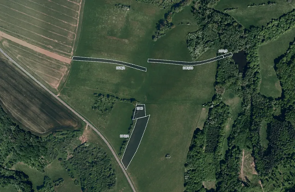 Pozemky jsou vedeny na těchto parcelních číslech: 117/10, 119/7, 140/2, 1028/2, 1040, 1042/4, 1071/9, 1083/10 a 1122.