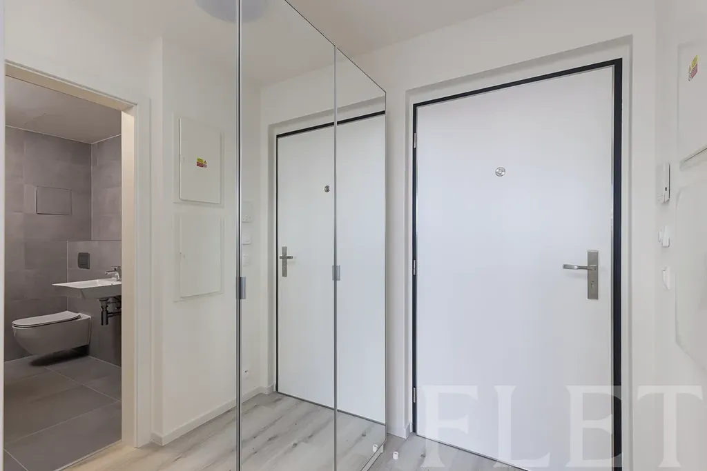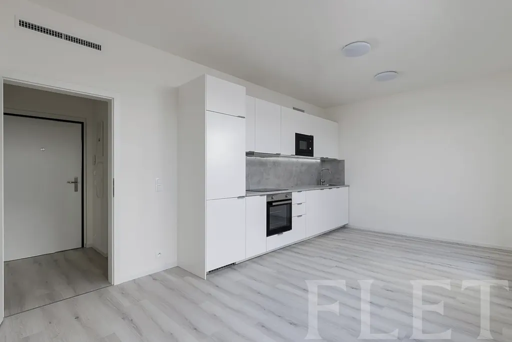 V pokoji je vám k dispozici vybavený kuchyňský kout (indukční deska, el. trouba, digestoř, lednice s mrazákem a vestavěná mikrovlnná trouba). Svou ranní kávu či večerní sklenku vína si budete moci vychutnat na terase s výhledem do nové okolní zástavby. V bytě jsou použity světlé odstíny barev, proto se meze vaší představivosti při jeho zařizování klást nebudou. Zároveň vás jistě potěší přítomnost rekuperace vzduchu. V koupelně se sprchovým koutem a toaletou je k dispozici také pračka. V předsíni je také velká vestavěná skříň, k bytu náleží sklep.