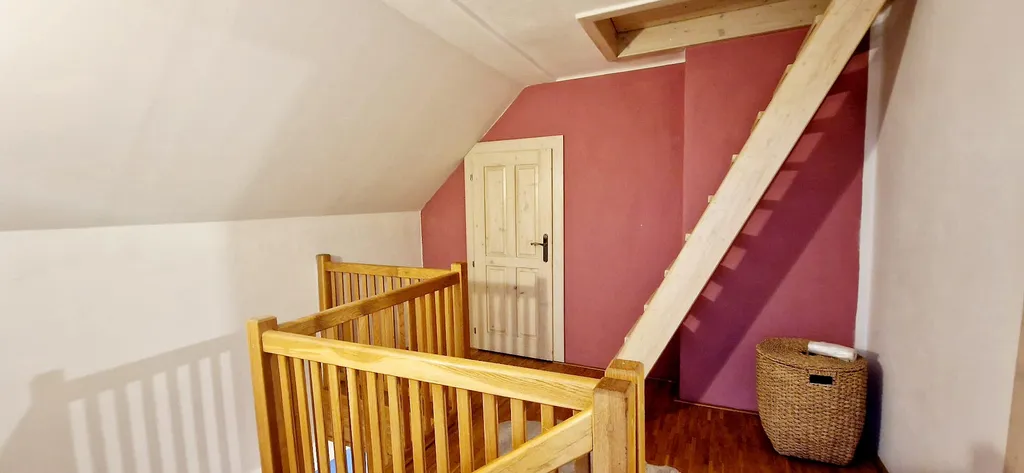 V patře se nachází ložnice a velký pokoj který se dá rozdělit na dva samostatné pokoje. Dům má i půdu.