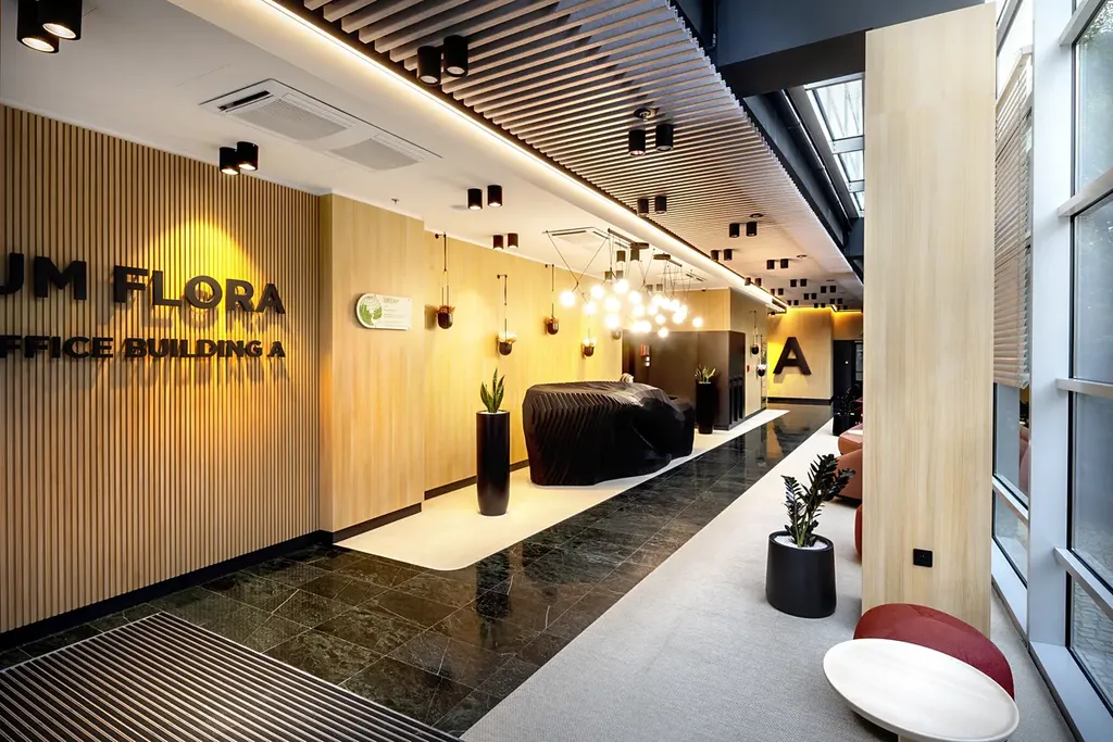 Palác Flora je unikátní multifunkční projekt, který propojuje kancelářské prostory s obchodní pasáží a nabízí nájemcům komplexní zázemí a služby. Kancelářská část se skládá ze tří vzájemně propojených budov o celkové ploše 18 000 m².