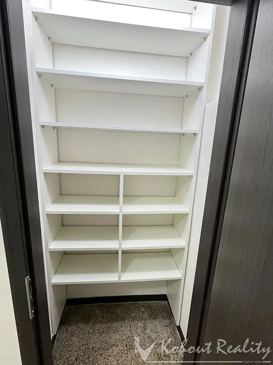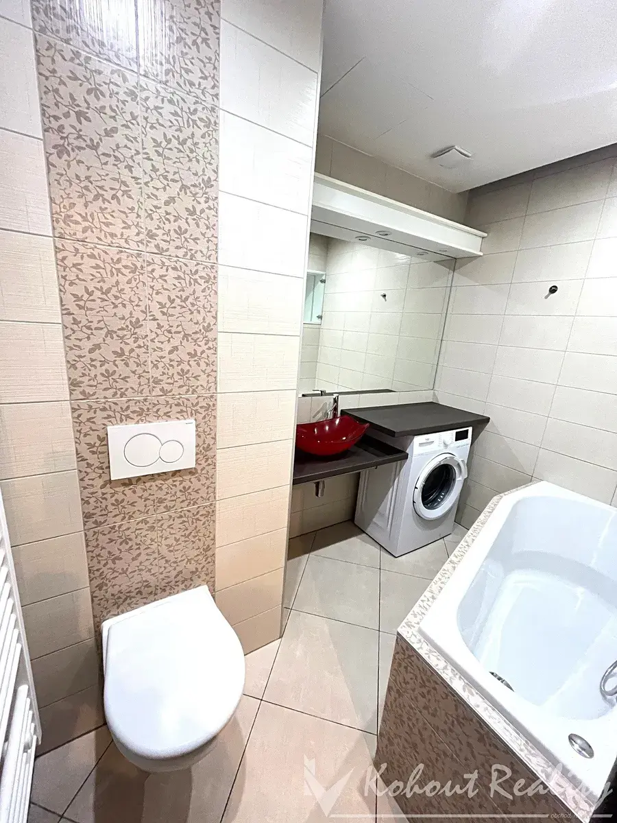 Byt působí vzdušně a útulně. V obývacím pokoji jsou zachovalé parkety a k dispozici je kožená rozkládací sedací souprava. Druhý pokoj má vinylovou podlahu a je řešen velmi prakticky – součástí je vestavěná šatna, kterou lze využít také jako pracovnu. Navíc je zde menší policová komora pro další úložný prostor.