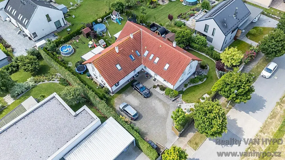 Vybavení bytu zahrnuje, kvalitní vinylové podlahy/plovoucí podlahy, dlažbu a obklady, interiérové dveře CAG, kuchyň včetně vestavěného nábytku citlivě řešeného na míru pro tento byt, k dispozici je také v obývacím pokoji nyní nevyužívaný komín pro instalaci krbových kamen, optický internet aj. Teplo a teplou vodu dodává plynový kondenzační kotel, v koupelně je instalováno el. podlahové topení. Velice příjemná je zahrada se závlahou, která byla navržena zahradním architektem a nabízí klidné posezení, místo na hry a odpočinek u zahradního jezírka.