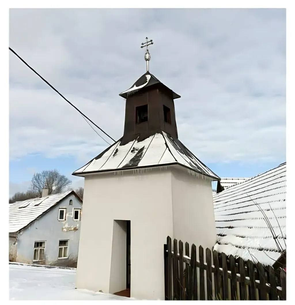 Celý pozemek je oplocený, příjezd je po obecním pozemku k vratům.