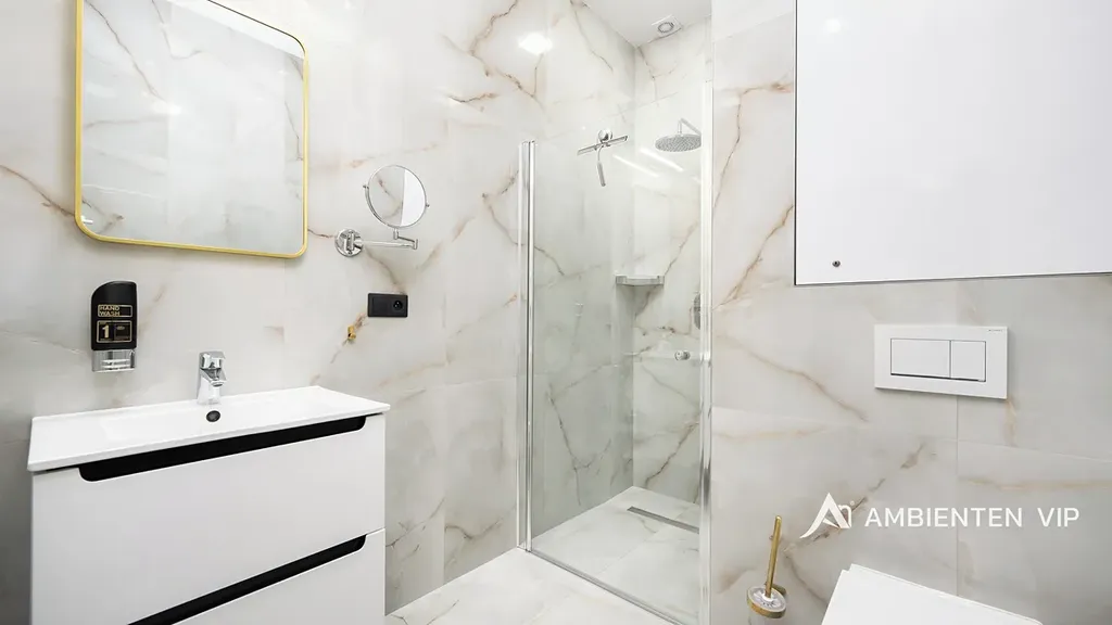 Všechny místnosti mají samostatný termostat pro regulaci teploty, vytápění je zajištěno teplovodním podlahovým topením a ohřev vody zajišťují elektrické bojlery. Skrze velká okna se do bytu dostane dostatek přirozeného světla a v případě potřeby lze využít zatemňovací venkovní žaluzie a klimatizaci, která vám zpříjemní žití v nemovitosti.