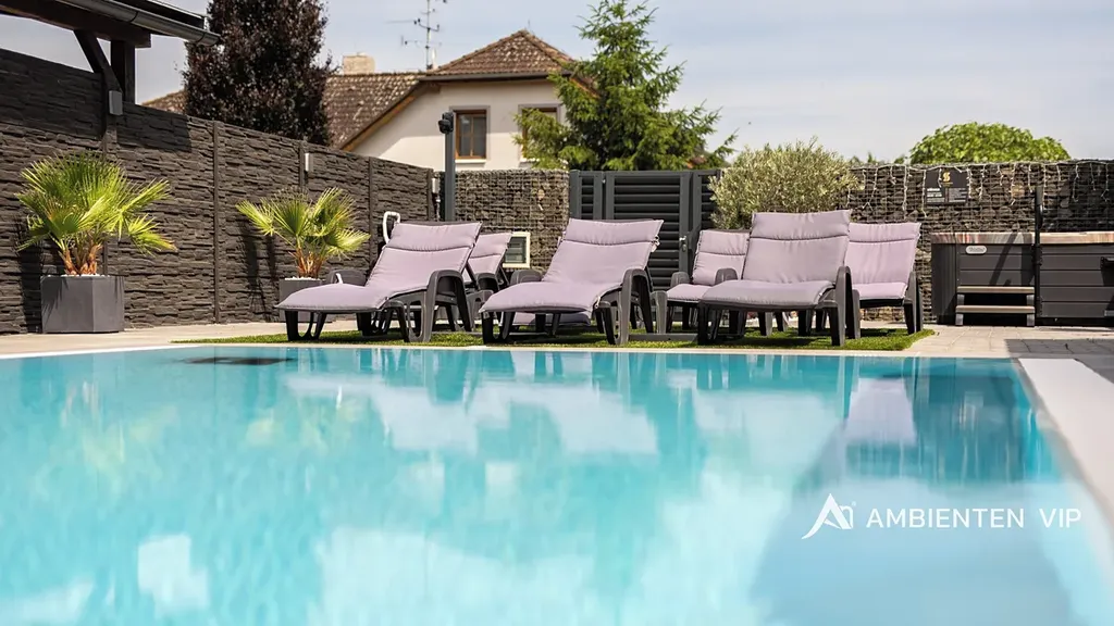 AMBIENTEN VIP exkluzivně nabízí pronájem luxusní bytové jednotky 3+kk o výměře 54 m² se sdílenou terasou s posezením. Od května do října je nájemcům k dispozici i společný bazén Parkování je zajištěné přímo před nemovitostí.