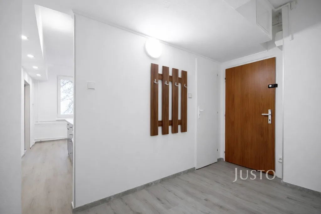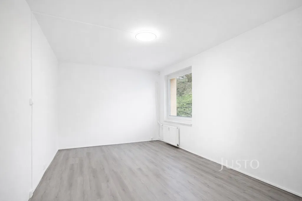 Byt právě prošel částečnou rekonstrukcí – byla provedena výměna podlahové krytiny, nově za vinyl, výmalba a běžná údržba. Součástí úprav je také zakrytí části původních konstrukcí pomocí sádrokartonového obkladu, což prostoru dodává útulný, čistší a modernější vzhled.