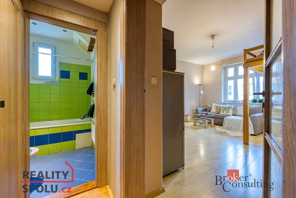 Dispozice bytu je 1+kk, v obytné části se nachází kuchyňský kout, prostorné patro na spaní a malá šatna. Koupelna je zařízena vanou, WC. K bytu náleží sklep. Ve volném čase je možné využít společnou zahradu ve dvoře.