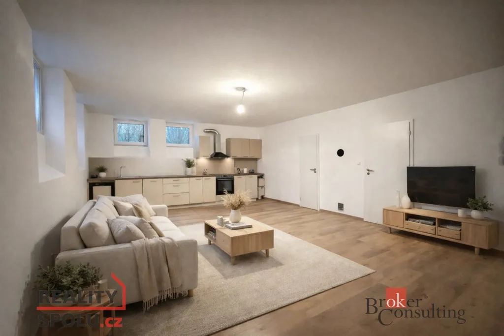 Byt je zrekonstruovaný a disponuje prostorným obývacím pokojem s velkou kuchyňskou linkou, která nabízí dostatek úložného i pracovního prostoru. Byt je vybaven podlahovým topením a velkou výhodou je také možnost instalace krbových kamen.