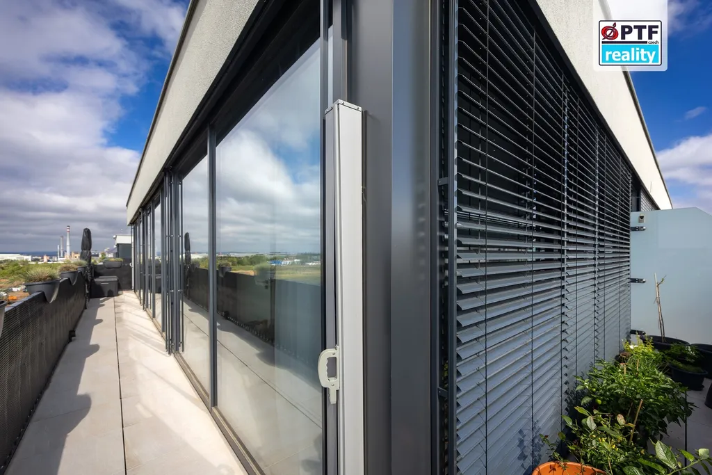 Přijdete domů. Odložíte klíče, projdete rovnou na terasu. Pod vámi ticho, stromy, připravovaný park. Žádné balkony naproti, žádné zvědavé pohledy – jen jihozápad, slunce a ten zvláštní klid, který má člověk jenom nahoře.