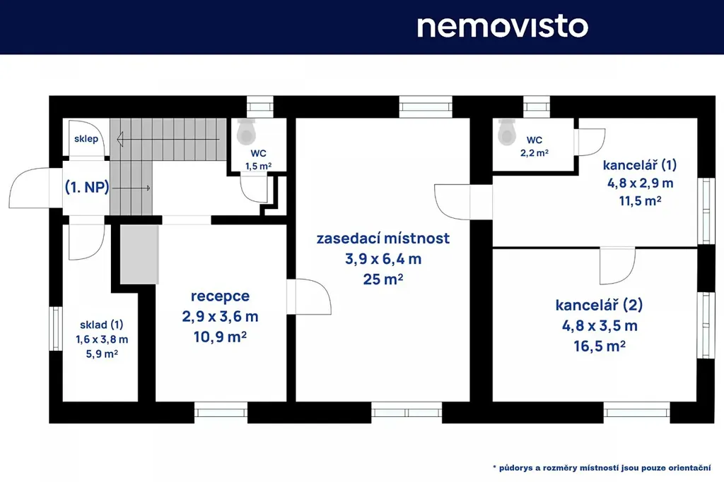 - recepce, 5 kanceláří a zasedací místnost