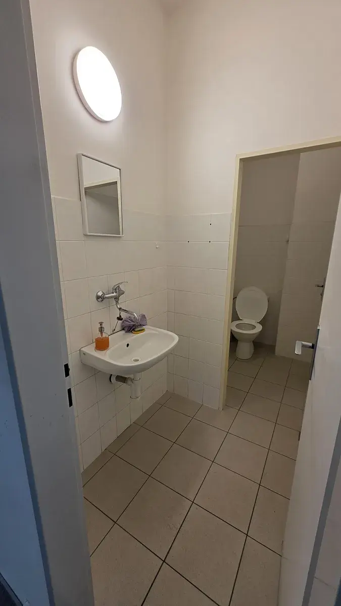 Objekt nájmu lze pronajmout i současně s místnostmi v přízemí budovy, které nabízí skladové nebo výrobní prostory o velikosti 185 m2.