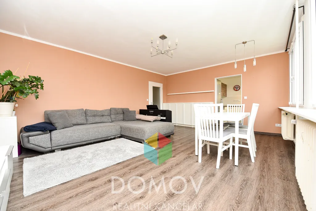 Původní dispozice 4+1 byla citlivě upravena na vzdušný a velmi komfortní 3+1, který nabízí dostatek prostoru i praktické uspořádání pro rodinné bydlení.