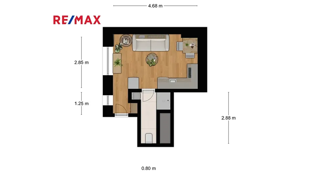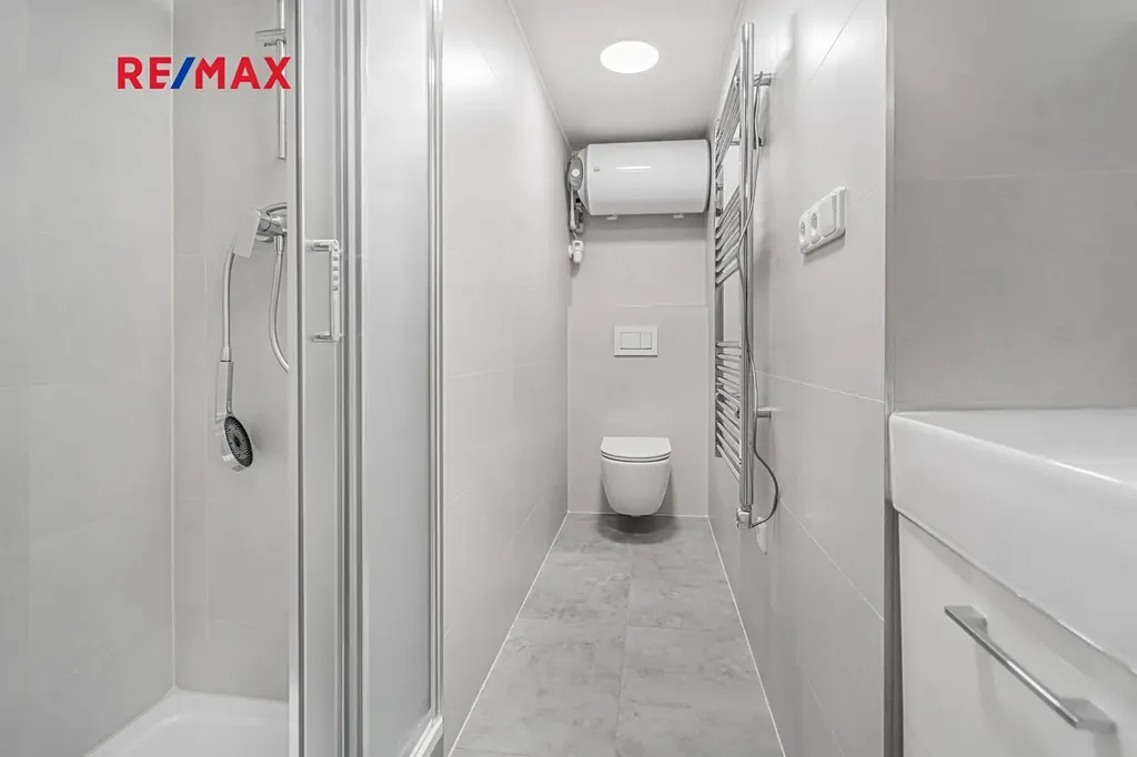 Byt se nachází ve 4. patře čtyřpatrového činžovního domu (bez výtahu). Samotná bytová jednotka právě prošla velmi pečlivou a zdařilou rekonstrukcí, společné prostory jsou postupně renovovány. Součástí bytu je moderně zařízená koupelna a kvalitní kuchyňská linka s dostatkem úložného prostoru. Dispoziční uspořádání a možnost vybavení jednotky je nejlépe patrné z vizualizace ve fotogalerii.