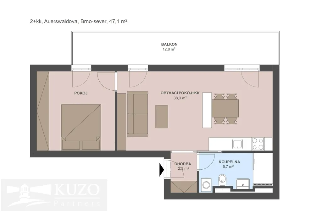 Pronájem bytu 2+kk, Brno, Auerswaldova, 47 m2 (ID: 2804619)