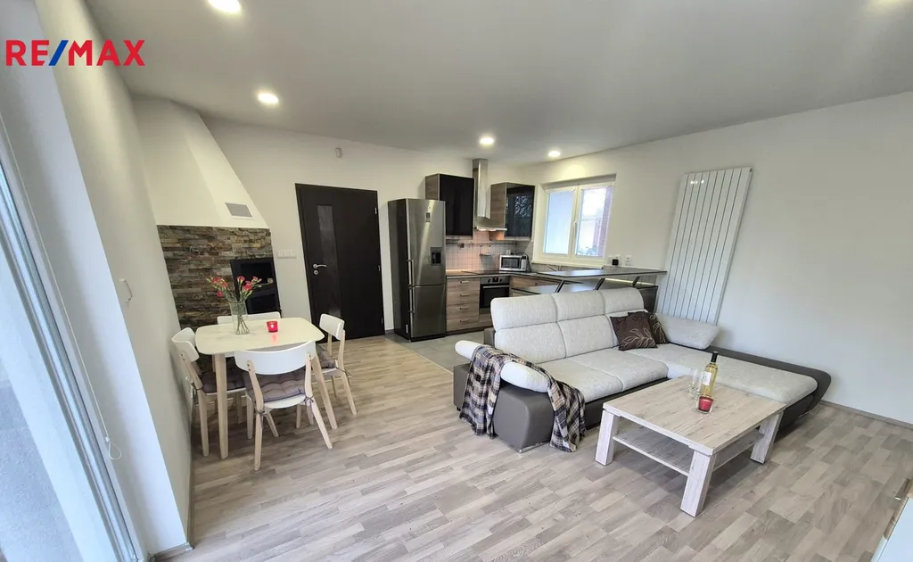 Obývací pokoj s kuchyňským koutem a dva další pokoje jsou vybaveny klimatizací. V pokojích jsou plovoucí podlahy, v ostatních místnostech dlažba. Všechna okna mají vnitřní i elektronicky ovládané venkovní žaluzie. Vytápění domu zajišťuje plynový kotel zn. Junkers. Dům je zabezpečen alarmem. Prostorná garáž nabízí kromě parkování také dostatek místa pro uskladnění dalších věcí. Velkou výhodou je přímé propojení domu s garáží, díky kterému se do interiéru dostanete „suchou nohou“. Převážně západní orientace zajišťuje dostatek denního světla v obytných prostorách a příjemné posezení na terase či zahradě. Na zahradě se nachází zahradní domek, její údržbu zajišťuje robotická sekačka. Energetický štítek v přípravě, do doby dodání proto uvádíme kategorii G.