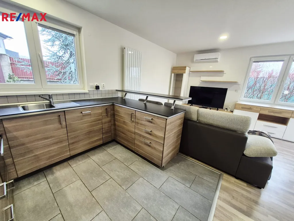 Nabízíme k dlouhodobému pronájmu přízemní rodinný dům typu bungalov o dispozici 4+kk a užitné ploše cca 140 m2, situovaný v klidné rezidenční zóně pražských Ďáblic. Vstupní část domu začíná zádveřím se šatním koutem, centrální předsíní nabízející vstup do obývacího pokoje s kuchyňským koutem, samostatného WC, komory a garáže. Na předsíň navazuje oddělená prostorná chodba s přístupem do tří samostatných neprůchozích pokojů o ploše 12 m2, 12 m2 a 14 m2. Chodba nabízí dostatek místa pro úložné prostory, není tedy nutné zatěžovat jednotlivé místnosti šatními skříněmi. Z chodby je zároveň přístupná koupelna vybavená sprchovým koutem, vanou a WC s bidetovou sprchou. Obývací pokoj s kuchyňským koutem o celkové ploše cca 30 m2 plynule navazuje na terasu propojenou se zahradou o velikosti 559 m2, která nabízí ideální prostor pro relaxaci i rodinné posezení. Přiložená vizualizace vybavení terasy je pouze ilustrativní. Bezbariérový dům je částečně zařízen. Kuchyňská linka nabízí lednici s mrazákem, sklokeramickou varnou desku, digestoř, horkovzdušnou troubou, mikrovlnnou troubou a myčku nádobí. Díky své dispozici ve tvaru U, je opticky oddělen kuchyňský kout a obývací část. Obývací pokoj je vybaven sedací soupravou, komodou s velkoplošnou televizí, dalšími úložnými prostory, jídelním stolem a židlemi. Útulnou atmosféru dotváří krb umístěný v rohu místnosti.