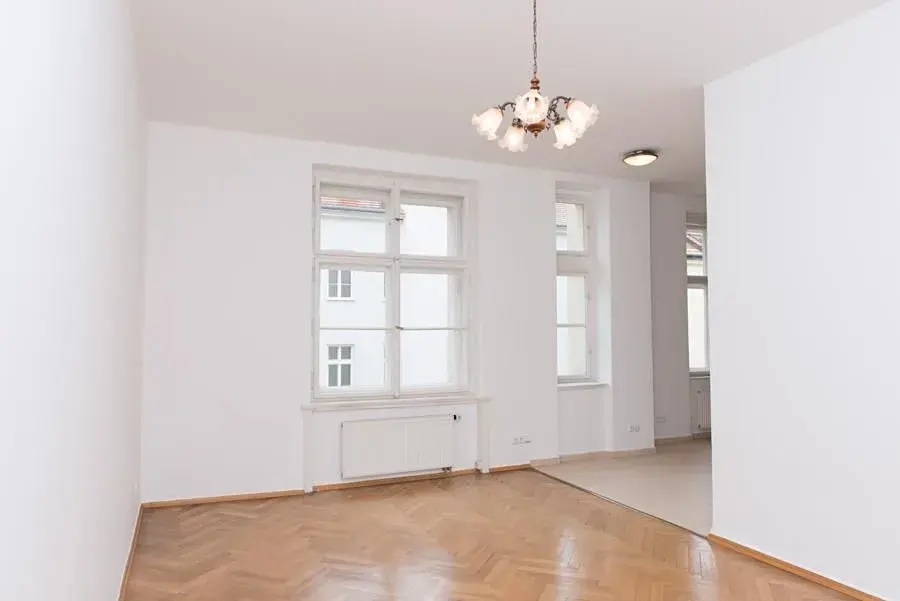 Prostorný rekonstruovaný nezařízený byt 2+kk (1 ložnice, 1 koupelna), o celkové rozloze 91 m2, je situovaný ve 3. patře reprezentativní budovy se zahradou a výtahem, v prestižní lokalitě na Vinohradech Praha 2, ulice Mánesova.