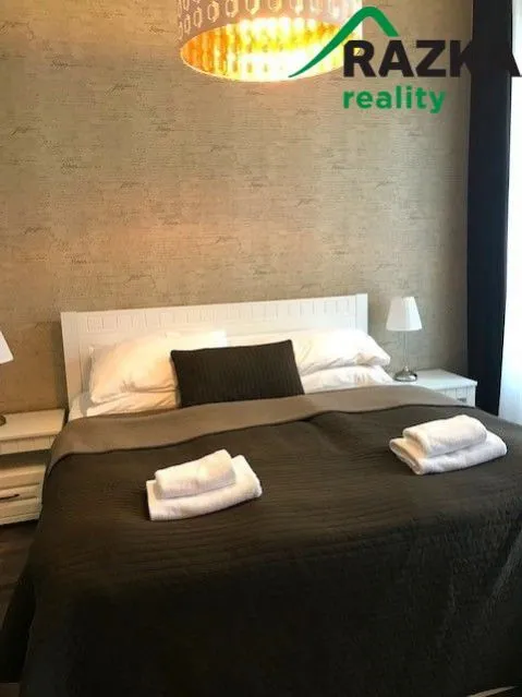 Apartmán je kompletně vybaven a připraven k okamžitému užívání. Vkusně řešený interiér nabízí pohodlný obytný prostor s rozkládací pohovkou a TV s plochou obrazovkou, plně zařízenou kuchyní s kvalitními spotřebiči a koupelnu s vanou. Veškeré vybavení zajišťuje maximální komfort bez nutnosti dalších investic.