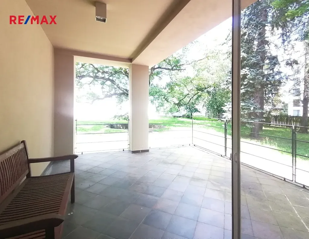 K prostoru patří velká zastřešená terasa s pěkným výhledem do zahrady, na kterou je vstup přímo z nebytového prostoru.